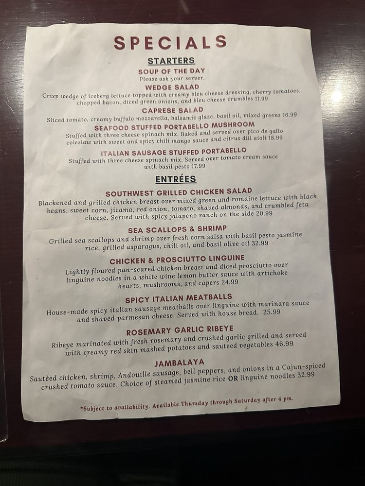 Jumbo shrimp paired with our oz. Ribeye steak-served with mashed potatoes and seasonal vegetables