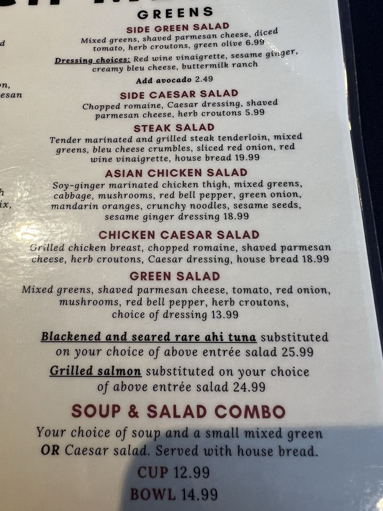 Tender steak over a mix of nine greens, red onions,and crumbled blue cheese - with a red wine vinaigrette